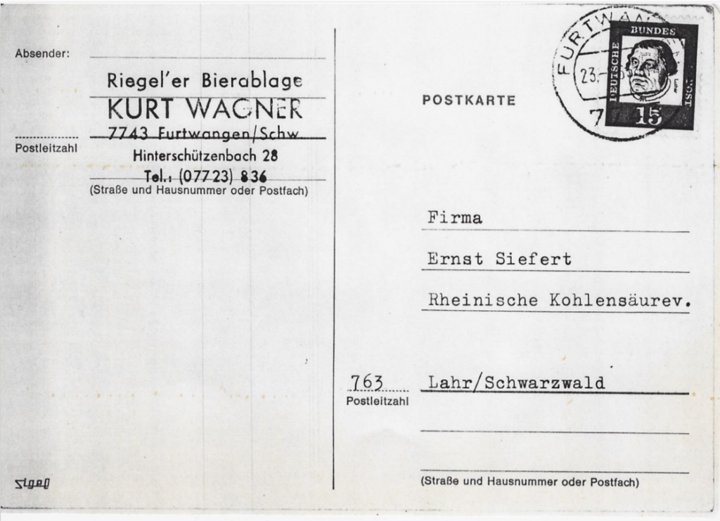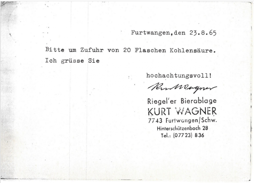 Herr Ernst Siefert sen. hat Mitte der 60 er Jahre als Nebenverdienst einen kleinen Kohlensäurevertrieb in Verbindung mit der damaligen Rheinischen-Kohlensäurewerke AG aus Eyach aufgebaut.